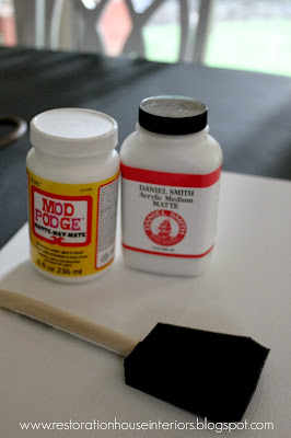 Then, take the sponge brush and spread the gel medium evenly across the canvas making sure there are no large clumps or bumpy areas and adhere your reverse print to the canvas.