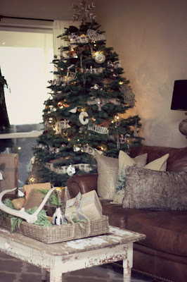 DeleteKennesha IT IS GORGEOUS I could live in it! LOVE all the texture and neutrals Oh mY!!! the antlers,packages,etc..I want that couch!! It goes with everything like a great belt or shoes. the ornaments are so cool-the deer etc..beautiful LOVE LOVE LOVE IT