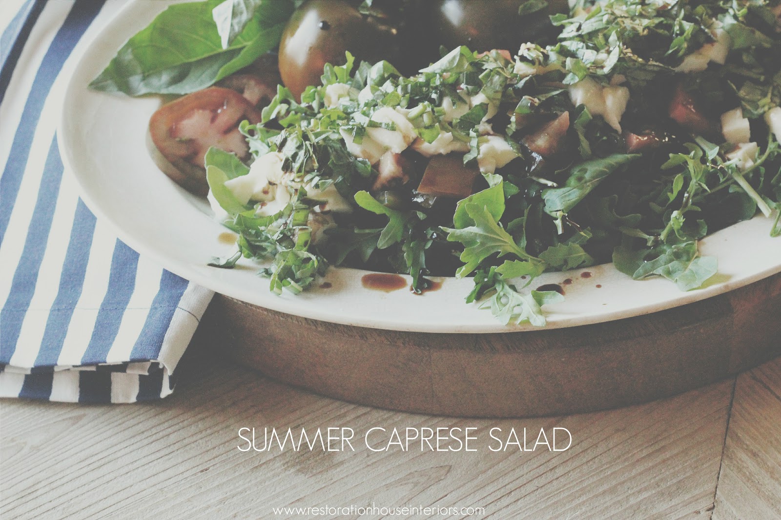 I really do love the extra layer of texture, taste and crunch the arugula adds to this popular salad and what I love the most about this is that it's so quick and easy to prepare it's great for last minute summer guests and ANYONE can make it!